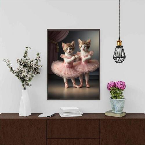 Quadro decorativo gatinhas bailarinas 24x18cm Cor: moldura branca Informações do produto tire todas as suas dúvidas no descritivo abaixo: decoração para quarto, sala, cozinha, escritório, área gourmet e muito mais. Chega de paredes vazias medidas - cada peça tem 24x18cm a5 . Material do papel - papel fotográfico brilhante de altíssima resolução acabamento - todos os quadros são acompanhados de uma película de acetato para proteção da imagem. - os quadros são embalados de forma segura com plástico bolha com camada dupla de acordo com o tamanho dos quadros. Garantia - garantia de 3 meses. Meu quadro chegou. Como posso fixá-lo Você precisa apenas de um martelo e um prego, pois os quadros já vão acompanhados de penduradores. Esta é a forma mais indicada. Caso prefira, você pode utilizar uma fita dupla face neste caso, sugerimos de alta qualidade para evitar que descole e seu quadro caia . Como posso limpar meu quadro A limpeza é feita como um móvel comum da sua casa. Apenas um pano seco ou espanador são suficientes para tal