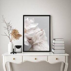 Quadro decorativo gatinho branco flor branca 33x24cm - com vidro Cor: moldura preta Informações do produto tire todas as suas dúvidas no descritivo abaixo: decoração para quarto, sala, cozinha, escritório, área gourmet e muito mais. Chega de paredes vazias medidas - cada peça tem 33x24cm a4 . Material do papel - papel fotográfico brilhante de altíssima resolução acabamento - todos os quadros são acompanhados de vidro para proteção da imagem. - moldura em madeira maciça na cor preta ou branca conforme produto escolhido e pendurador . - os quadros são embalados de forma segura com plástico bolha com camada dupla de acordo com o tamanho dos quadros. - de 3 meses. Meu quadro chegou. Como posso fixá-lo Você precisa apenas de um martelo e um prego, pois os quadros já vão acompanhados de penduradores. Esta é a forma mais indicada. Como posso limpar meu quadro A limpeza é feita como um móvel comum da sua casa. Apenas um pano seco ou espanador são suficientes para tal