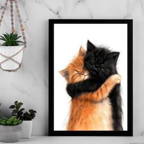 Quadro decorativo gatinhos abraçados 45x34cm - com vidro Cor: moldura preta Informações do produto tire todas as suas dúvidas no descritivo abaixo: decoração para quarto, sala, cozinha, escritório, área gourmet e muito mais. Chega de paredes vazias medidas - cada peça tem 45x34cm a3 . Material do papel - papel fotográfico brilhante de altíssima resolução acabamento - todos os quadros são acompanhados de vidro para proteção da imagem. - moldura em madeira maciça na cor preta ou branca conforme produto escolhido e pendurador . - os quadros são embalados de forma segura com plástico bolha com camada dupla de acordo com o tamanho dos quadros. Garantia - garantia de 3 meses. Meu quadro chegou. Como posso fixá-lo Você precisa apenas de um martelo e um prego, pois os quadros já vão acompanhados de penduradores. Esta é a forma mais indicada. Como posso limpar meu quadro A limpeza é feita como um móvel comum da sua casa. Apenas um pano seco ou espanador são suficientes para tal Ean: 7891234553218