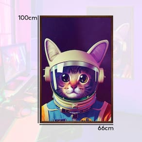 Quadro Decorativo Gato Astronauta Moldura Cx Alta 100x66