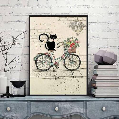 Quadro decorativo gato com bicicleta 33x24cm Moldura: madeira preta Informações do produto tire todas as suas dúvidas no descritivo abaixo: decoração para quarto, sala, cozinha, escritório, área gourmet e muito mais. Chega de paredes vazias medidas - cada peça tem 33x24cm a4 . Material do papel - papel fotográfico brilhante de altíssima resolução acabamento - todos os quadros são acompanhados de uma película de acetato para proteção da imagem. - moldura em madeira maciça na cor preta e pendurador móvel que pode ser retirado facilmente caso deseje fixar com fita dupla face. - os quadros são embalados de forma segura com plástico bolha com camada dupla de acordo com o tamanho dos quadros.