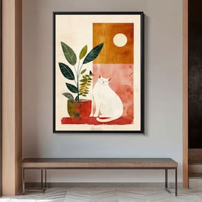 Quadro Decorativo Gato E Vaso Minimalista Quadro Decorativo Gato e Vaso Minimalista Moldura Dourada - 118x78cm - Especificações