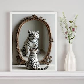 Quadro decorativo gato espelho tigre 33x24cm Cor: moldura branca Informações do produto tire todas as suas dúvidas no descritivo abaixo: decoração para quarto, sala, cozinha, escritório, área gourmet e muito mais. Chega de paredes vazias medidas - cada peça tem 33x24cm a4 . Material do papel - papel fotográfico brilhante de altíssima resolução acabamento - todos os quadros são acompanhados de uma película de acetato para proteção da imagem. - os quadros são embalados de forma segura com plástico bolha com camada dupla de acordo com o tamanho dos quadros. - de 3 meses. Meu quadro chegou. Como posso fixá-lo Você precisa apenas de um martelo e um prego, pois os quadros já vão acompanhados de penduradores. Esta é a forma mais indicada. Caso prefira, você pode utilizar uma fita dupla face neste caso, sugerimos de alta qualidade para evitar que descole e seu quadro caia . Como posso limpar meu quadro A limpeza é feita como um móvel comum da sua casa. Apenas um pano seco ou espanador são suficientes para tal Marca: Não Informado