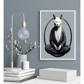 Quadro decorativo gato fazendo yoga 33x24cm - com vidro Moldura: madeira branca Informações do produto tire todas as suas dúvidas no descritivo abaixo: decoração para quarto, sala, cozinha, escritório, área gourmet e muito mais. Chega de paredes vazias medidas - cada peça tem 33x24cm a4 . Material do papel - papel fotográfico brilhante de altíssima resolução acabamento - todos os quadros são acompanhados de vidro para proteção da imagem. - moldura em madeira maciça na cor preta ou branca conforme produto escolhido e pendurador . - os quadros são embalados de forma segura com plástico bolha com camada dupla de acordo com o tamanho dos quadros. Garantia - garantia de 3 meses. Meu quadro chegou. Como posso fixá-lo Você precisa apenas de um martelo e um prego, pois os quadros já vão acompanhados de penduradores. Esta é a forma mais indicada. Como posso limpar meu quadro A limpeza é feita como um móvel comum da sua casa. Apenas um pano seco ou espanador são suficientes para tal Ean: 7899404001453