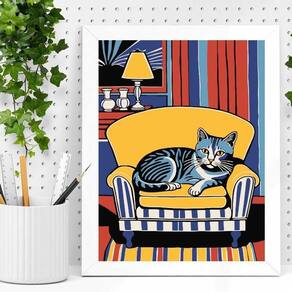 Quadro decorativo gato na sala 24x18cm - com vidro Cor: moldura branca Informações do produto tire todas as suas dúvidas no descritivo abaixo: decoração para quarto, sala, cozinha, escritório, área gourmet e muito mais. Chega de paredes vazias medidas - cada peça tem 24x18cm a5 . Material do papel - papel fotográfico brilhante de altíssima resolução acabamento - todos os quadros são acompanhados de vidro para proteção da imagem. - moldura em madeira maciça na cor preta ou branca conforme produto escolhido e pendurador . - os quadros são embalados de forma segura com plástico bolha com camada dupla de acordo com o tamanho dos quadros. Garantia - garantia de 3 meses. Meu quadro chegou. Como posso fixá-lo Você precisa apenas de um martelo e um prego, pois os quadros já vão acompanhados de penduradores. Esta é a forma mais indicada. Como posso limpar meu quadro A limpeza é feita como um móvel comum da sua casa. Apenas um pano seco ou espanador são suficientes para tal