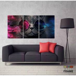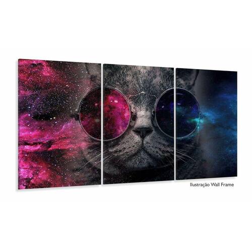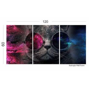 Quadro Decorativo Gato Pisicodelico Óculos 3 peças 120x60