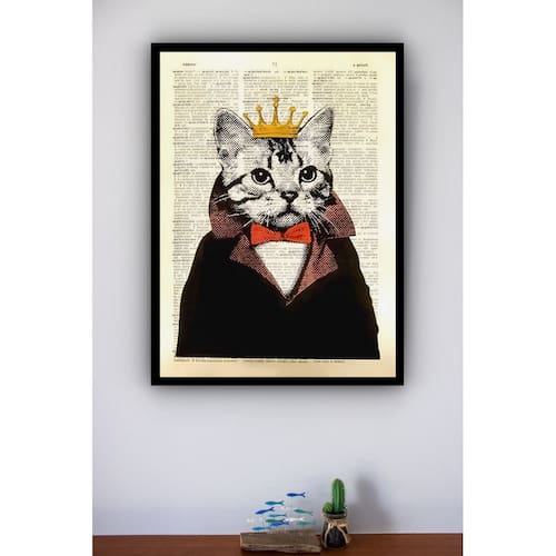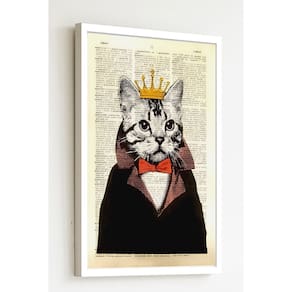 Quadro Decorativo Gato Rei Vintage - 70x50cm - Cor: Moldura Preta