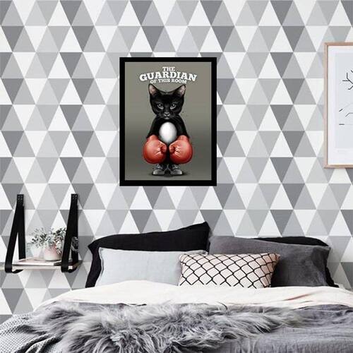 Quadro Decorativo Gato The Guardian - Tamanho: A4 (20 x 30) / Acabamento: Película de acetato / Moldura: Madeira preta