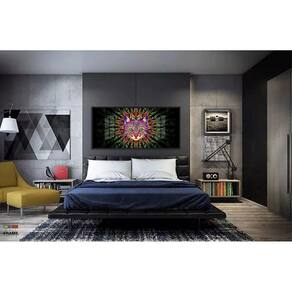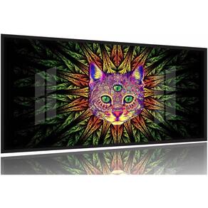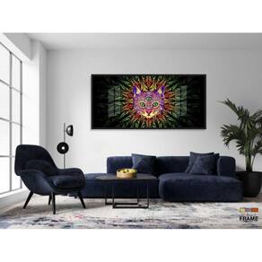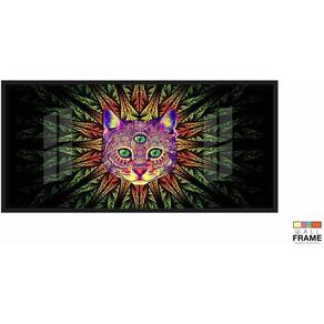 Quadro Decorativo Gato Trance Psicodélico 130x60 Moldura Preta 2x2