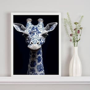 Quadro decorativo girafa estampa flores azuis 33x24cm - com vidro Cor: moldura preta Informações do produto tire todas as suas dúvidas no descritivo abaixo: decoração para quarto, sala, cozinha, escritório, área gourmet e muito mais. Chega de paredes vazias medidas - cada peça tem 33x24cm a4 . Material do papel - papel fotográfico brilhante de altíssima resolução acabamento - todos os quadros são acompanhados de vidro para proteção da imagem. - moldura em madeira maciça na cor preta ou branca conforme produto escolhido e pendurador . - os quadros são embalados de forma segura com plástico bolha com camada dupla de acordo com o tamanho dos quadros. - de 3 meses. Meu quadro chegou. Como posso fixá-lo Você precisa apenas de um martelo e um prego, pois os quadros já vão acompanhados de penduradores. Esta é a forma mais indicada. Como posso limpar meu quadro A limpeza é feita como um móvel comum da sua casa. Apenas um pano seco ou espanador são suficientes para tal