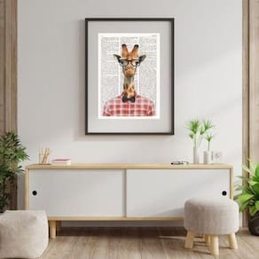 Quadro decorativo girafa nerd - 60x48cm Moldura: madeira branca Informações do produto tire todas as suas dúvidas no descritivo abaixo: decoração para quarto, sala, cozinha, escritório, área gourmet e muito mais. Chega de paredes vazias medidas - cada peça tem 60x48cm . Material do papel - papel fotográfico brilhante de altíssima resolução acabamento - todos os quadros são acompanhados de vidro para proteção da imagem. - moldura em madeira maciça na cor preta ou branca conforme produto escolhido e pendurador. - paspatur branco com 7cm de largura - os quadros são embalados de forma segura com plástico bolha com camada dupla de acordo com o tamanho dos quadros. Garantia - garantia de 3 meses. Meu quadro chegou. Como posso fixá-lo Você precisa apenas de um martelo e um prego, pois os quadros já vão acompanhados de penduradores. Esta é a forma mais indicada. Como posso limpar meu quadro A limpeza é feita como um móvel comum da sua casa. Apenas um pano seco ou espanador são suficientes para tal