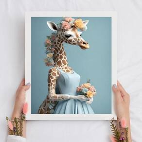 Quadro decorativo girafa noiva 33x24cm Cor: moldura preta Informações do produto tire todas as suas dúvidas no descritivo abaixo: decoração para quarto, sala, cozinha, escritório, área gourmet e muito mais. Chega de paredes vazias medidas - cada peça tem 33x24cm a4 . Material do papel - papel fotográfico brilhante de altíssima resolução acabamento - todos os quadros são acompanhados de uma película de acetato para proteção da imagem. - os quadros são embalados de forma segura com plástico bolha com camada dupla de acordo com o tamanho dos quadros. Garantia - garantia de 3 meses. Meu quadro chegou. Como posso fixá-lo Você precisa apenas de um martelo e um prego, pois os quadros já vão acompanhados de penduradores. Esta é a forma mais indicada. Caso prefira, você pode utilizar uma fita dupla face neste caso, sugerimos de alta qualidade para evitar que descole e seu quadro caia . Como posso limpar meu quadro A limpeza é feita como um móvel comum da sua casa. Apenas um pano seco ou espanador são suficientes para tal Ean: 7891234532732