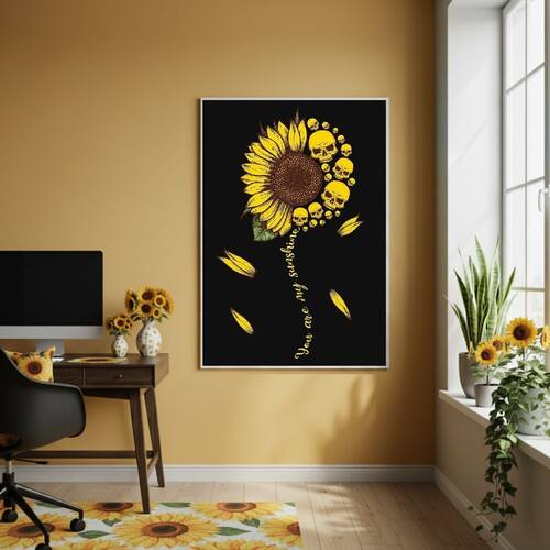 Quadro Decorativo Girassol Caveiras - 70x50cm Mold Branca