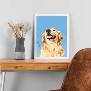 Quadro decorativo golden retriever 45x34cm Cor: moldura branca Informações do produto tire todas as suas dúvidas no descritivo abaixo: decoração para quarto, sala, cozinha, escritório, área gourmet e muito mais. Chega de paredes vazias. Medidas - cada peça tem 45x34cm a3 . Material do papel - papel fotográfico brilhante de altíssima resolução acabamento - todos os quadros são acompanhados de uma película de acetato para proteção da imagem. - os quadros são embalados de forma segura com plástico bolha com camada dupla de acordo com o tamanho dos quadros. Garantia - garantia de 3 meses. Meu quadro chegou. Como posso fixá-lo Você precisa apenas de um martelo e um prego, pois os quadros já vão acompanhados de penduradores. Esta é a forma mais indicada. Caso prefira, você pode utilizar uma fita dupla face neste caso, sugerimos de alta qualidade para evitar que descole e seu quadro caia . Como posso limpar meu quadro A limpeza é feita como um móvel comum da sua casa. Apenas um pano seco ou espanador são suficientes para tal