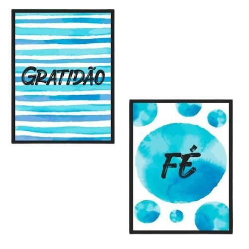 Itens inclusos 02 Quadros Decorativos Gratidão E Fé Azul 24 X 18 Cm