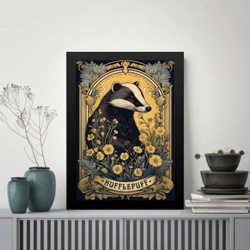 Quadro decorativo guaxinim hufflepuff 24x18cm - com vidro Cor: moldura branca Informações do produto tire todas as suas dúvidas no descritivo abaixo: decoração para quarto, sala, cozinha, escritório, área gourmet e muito mais. Chega de paredes vazias medidas - cada peça tem 24x18cm a5 . Material do papel - papel fotográfico brilhante de altíssima resolução acabamento - todos os quadros são acompanhados de vidro para proteção da imagem. - moldura em madeira maciça na cor preta ou branca conforme produto escolhido e pendurador . - os quadros são embalados de forma segura com plástico bolha com camada dupla de acordo com o tamanho dos quadros. Garantia - garantia de 3 meses. Meu quadro chegou. Como posso fixá-lo Você precisa apenas de um martelo e um prego, pois os quadros já vão acompanhados de penduradores. Esta é a forma mais indicada. Como posso limpar meu quadro A limpeza é feita como um móvel comum da sua casa. Apenas um pano seco ou espanador são suficientes para tal