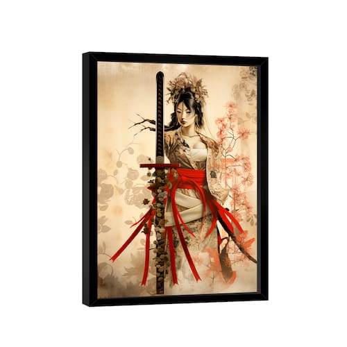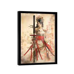 Quadro Decorativo Gueixa Bege Moldura Preta - Médio 84x54 -