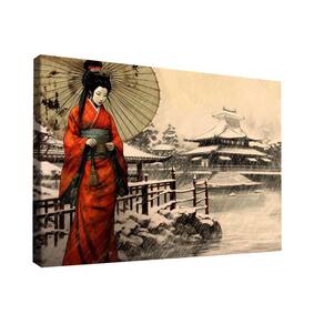 Quadro Decorativo Guerreira Japonesa Moldura Branca - Pequeno 60x40 -