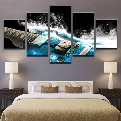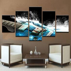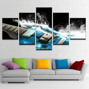 Quadro Decorativo Guitarra 5 partes 130x65 em tecido