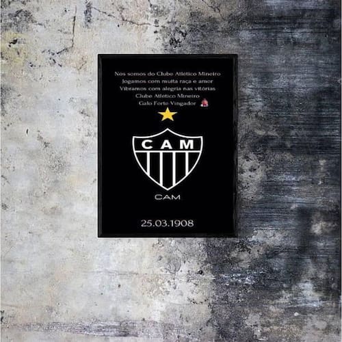 Quadro decorativo hino atlético mg Tamanho: a4 20 x 30 Acabamento: película de acetato Moldura: madeira preta Informações do produto