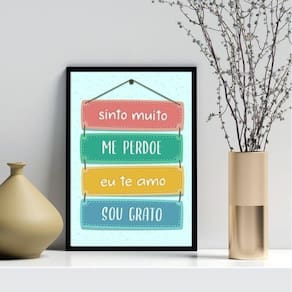 Quadro decorativo ho' oponopono mágico- placas 45x34cm Moldura: madeira preta Informações do produto tire todas as suas dúvidas no descritivo abaixo: decoração para quarto, sala, cozinha, escritório, área gourmet e muito mais. Chega de paredes vazias. Medidas - cada peça tem 45x34cm a3 . Material do papel - papel fotográfico brilhante de altíssima resolução acabamento - todos os quadros são acompanhados de uma película de acetato para proteção da imagem. - os quadros são embalados de forma segura com plástico bolha com camada dupla de acordo com o tamanho dos quadros. Garantia - garantia de 3 meses. Meu quadro chegou. Como posso fixá-lo Você precisa apenas de um martelo e um prego, pois os quadros já vão acompanhados de penduradores. Esta é a forma mais indicada. Caso prefira, você pode utilizar uma fita dupla face neste caso, sugerimos de alta qualidade para evitar que descole e seu quadro caia . Como posso limpar meu quadro A limpeza é feita como um móvel comum da sua casa. Apenas um pano seco ou espanador são suficientes para tal Ean: 7897069552914
