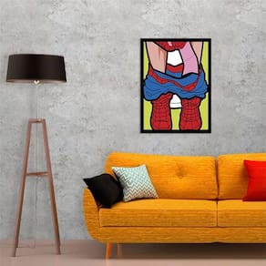 Quadro Decorativo Homem Aranha no Banheiro - Tamanho: A4 (20 x 30) / Acabamento: Película de acetato / Moldura: Madeira preta