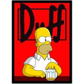 Quadro Decorativo Homer Simpsons Duff Cerveja Bar Moldura - Tamanho 42 cm de comprimento x 30 cm de largura, moldura forte rígida, lisa de perfeito acabamento; - Qualidade Do Quadro Impressão em policarbonato específico, próprio para o uso na indústria gráfica. Consiste basicamente de uma camada de revestimento texturizado no qual a impressão conserva-se impermeável, resistente a riscos e a exposição solar. O produto é composto de materiais não tóxicos. Possui altíssima resolução e apresenta longa durabilidade. Pode-se limpá-lo com facilidade utilizando álcool ou pano úmido. E o mais importante de tudo: o quadro apresenta uma estética super atraente, proporcionando um efeito visual que deixará seu ambiente muito mais agradável. Você poderá utilizá-lo para decorações em consultórios, salas comerciais, ambientes domésticos, empresariais ou outros ambientes os quais queira deixá-los mais atrativos, com a beleza, o encanto e a harmonia proporcionados pelos quadros decorativos; - Acompanha o suporte atrás pronto para fixá-lo à parede; - Possui moldura: Sim; - Cor da moldura: Preto; - Pronto para pendurar: Sim; Marca: Não Informado