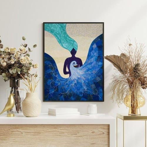 Quadro decorativo iemanjá abstrato 33x24cm Moldura: madeira branca Informações do produto tire todas as suas dúvidas no descritivo abaixo: decoração para quarto, sala, cozinha, escritório, área gourmet e muito mais. Chega de paredes vazias medidas - cada peça tem 33x24cm a4 . Material do papel - papel fotográfico brilhante de altíssima resolução acabamento - todos os quadros são acompanhados de uma película de acetato para proteção da imagem. - os quadros são embalados de forma segura com plástico bolha com camada dupla de acordo com o tamanho dos quadros. Garantia - garantia de 3 meses. Meu quadro chegou. Como posso fixá-lo Você precisa apenas de um martelo e um prego, pois os quadros já vão acompanhados de penduradores. Esta é a forma mais indicada. Caso prefira, você pode utilizar uma fita dupla face neste caso, sugerimos de alta qualidade para evitar que descole e seu quadro caia . Como posso limpar meu quadro A limpeza é feita como um móvel comum da sua casa. Apenas um pano seco ou espanador são suficientes para tal Ean: 7891400869297