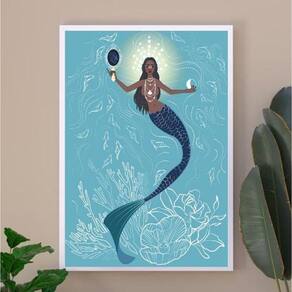 Quadro decorativo iemanjá sereia 33x24cm Moldura: madeira branca Informações do produto tire todas as suas dúvidas no descritivo abaixo: decoração para quarto, sala, cozinha, escritório, área gourmet e muito mais. Chega de paredes vazias medidas - cada peça tem 33x24cm a4 . Material do papel - papel fotográfico brilhante de altíssima resolução acabamento - todos os quadros são acompanhados de uma película de acetato para proteção da imagem. - os quadros são embalados de forma segura com plástico bolha com camada dupla de acordo com o tamanho dos quadros. Garantia - garantia de 3 meses. Meu quadro chegou. Como posso fixá-lo Você precisa apenas de um martelo e um prego, pois os quadros já vão acompanhados de penduradores. Esta é a forma mais indicada. Caso prefira, você pode utilizar uma fita dupla face neste caso, sugerimos de alta qualidade para evitar que descole e seu quadro caia . Como posso limpar meu quadro A limpeza é feita como um móvel comum da sua casa. Apenas um pano seco ou espanador são suficientes para tal