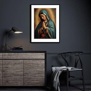 Quadro decorativo imaculado coração de maria - 60x48cm Moldura: madeira preta Informações do produto tire todas as suas dúvidas no descritivo abaixo: decoração para quarto, sala, cozinha, escritório, área gourmet e muito mais. Chega de paredes vazias medidas - cada peça tem 60x48cm . Material do papel - papel fotográfico brilhante de altíssima resolução acabamento - todos os quadros são acompanhados de vidro para proteção da imagem. - moldura em madeira maciça na cor preta ou branca conforme produto escolhido e pendurador. - paspatur branco com 7cm de largura - os quadros são embalados de forma segura com plástico bolha com camada dupla de acordo com o tamanho dos quadros. Garantia - garantia de 3 meses. Meu quadro chegou. Como posso fixá-lo Você precisa apenas de um martelo e um prego, pois os quadros já vão acompanhados de penduradores. Esta é a forma mais indicada. Como posso limpar meu quadro A limpeza é feita como um móvel comum da sua casa. Apenas um pano seco ou espanador são suficientes para tal Ean: 7895497718926