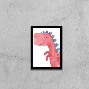 Quadro Decorativo Infantil Dinossauro Rosa 24X18Cm Moldura: madeira branca