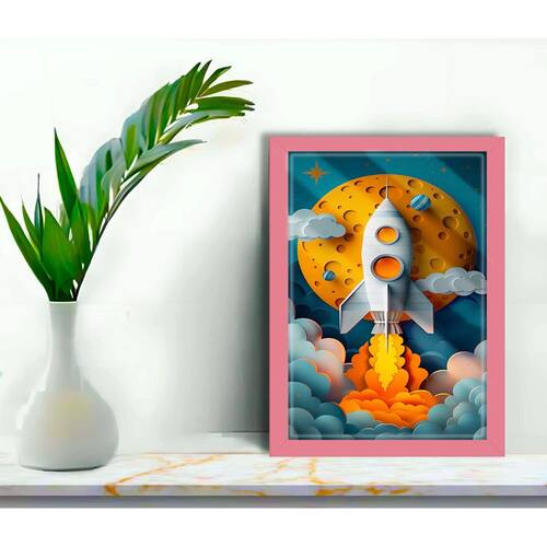 Descrição do produto: Adicione um toque de aventura e diversão ao seu ambiente com este quadro decorativo infantil de foguete espacial. Com dimensões de 33x25 cm e acabamento em vidro, é perfeito para salas, trazendo a emoção e a imaginação do espaço para o seu espaço. Transforme seu ambiente com esta peça encantadora e cheia de personalidade! Benefícios:Durabilidade: Moldura resistente e vidro que protege contra poeira e danosEstilo: Adiciona beleza e personalidade ao seu espaço, criando um ambiente perfeito.Facilidade: Pronto para pendurar, sem necessidade de montagem Características:01 Peça(s)Com vidro.Moldura feita de madeira maciça disponíveis nas cores:Preta, Branca, Rosa e Azul TurquesaImagem A4 de alta qualidade protegida contra umidade. Dimensões:Moldura: 25 cm L. 33,7 cm AlturaImagem: 21 cm L. 30 cm AlturaVidro: 0,3 mm Espessura Marca: Estação Vest