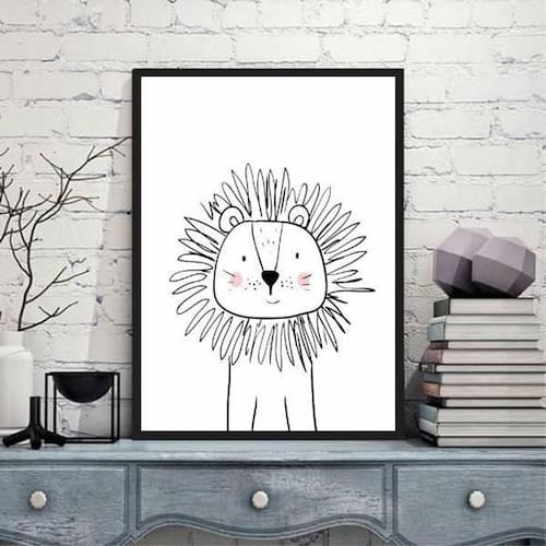 Quadro decorativo infantil leãozinho 24x18cm Moldura: madeira preta Informações do produto tire todas as suas dúvidas no descritivo abaixo: decoração para quarto, sala, cozinha, escritório, área gourmet e muito mais. Chega de paredes vazias medidas - cada peça tem 24x18cm a5 .