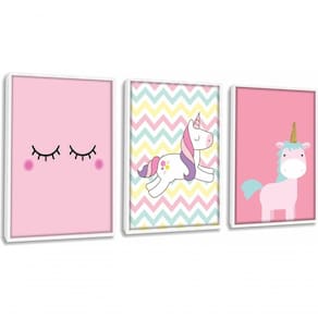 Quadro Decorativo Infantil Unicórnio Com Moldura Branco