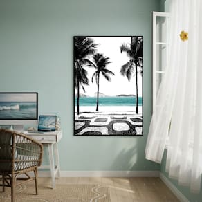 Quadro Decorativo Ipanema Rio De Janeiro-70x50cm - Cor: Moldura Preta