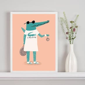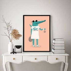 Quadro decorativo jacaré jogando tênis 33x24cm - com vidro Cor: moldura preta Informações do produto tire todas as suas dúvidas no descritivo abaixo: decoração para quarto, sala, cozinha, escritório, área gourmet e muito mais. Chega de paredes vazias medidas - cada peça tem 33x24cm a4 . Material do papel - papel fotográfico brilhante de altíssima resolução acabamento - todos os quadros são acompanhados de vidro para proteção da imagem. - moldura em madeira maciça na cor preta ou branca conforme produto escolhido e pendurador . - os quadros são embalados de forma segura com plástico bolha com camada dupla de acordo com o tamanho dos quadros. - de 3 meses. Meu quadro chegou. Como posso fixá-lo Você precisa apenas de um martelo e um prego, pois os quadros já vão acompanhados de penduradores. Esta é a forma mais indicada. Como posso limpar meu quadro A limpeza é feita como um móvel comum da sua casa. Apenas um pano seco ou espanador são suficientes para tal Ean: 7901039751549