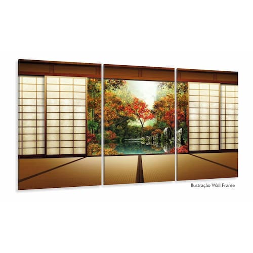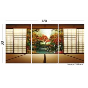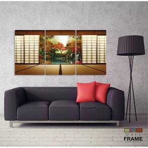 Quadro Decorativo Janela do Japão 120x60 3 peças em tecido