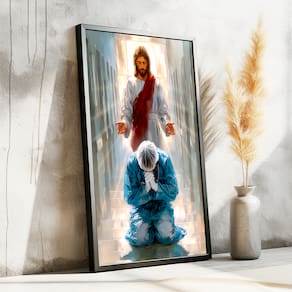 Quadro Decorativo Jesus Abençoando o Médico Moldura Branca e Vidro - 118x78cm -