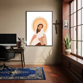 Quadro Decorativo Jesus Cristo Desenho - 70x50cm - Cor: Moldura Preta