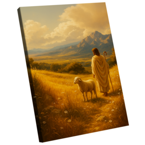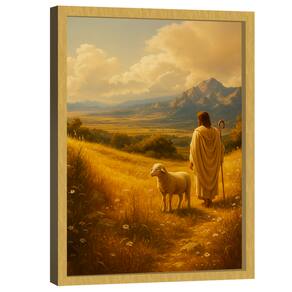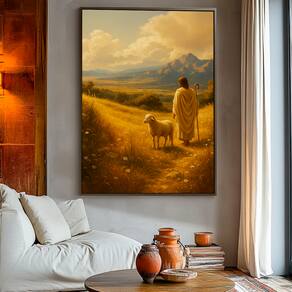 Quadro Decorativo Jesus e Cordeiro no Pasto Borda Infinita - 118x78cm -