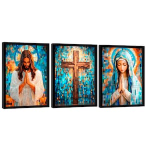 Quadro Decorativo Jesus e Maria em Grid Art Moldura Dourada - 118x78cm -