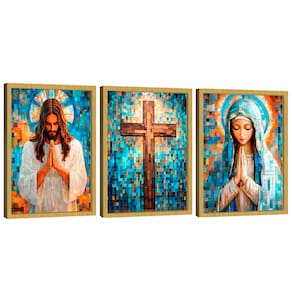 Quadro Decorativo Jesus e Maria em Grid Art Moldura Preta - 84x54cm -