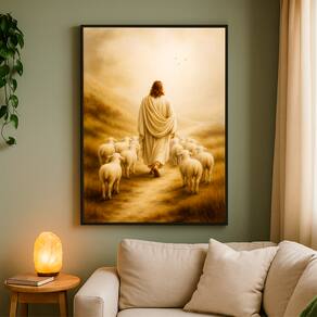 Quadro Decorativo Jesus e Suas Ovelhas Moldura Branca - 60x40cm -