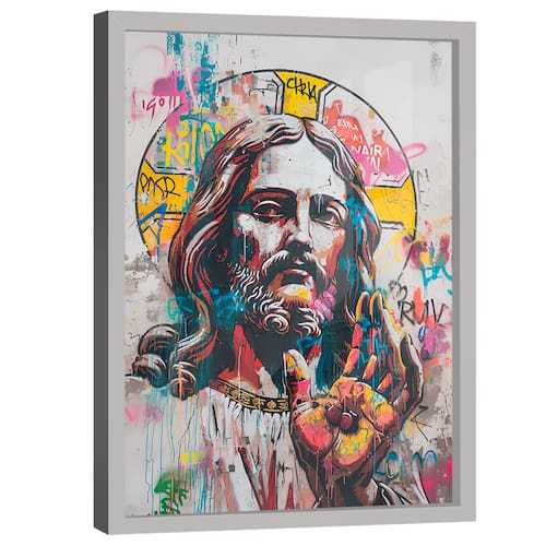 Quadro Decorativo Jesus Grafite Moldura Branca e Vidro - 180x105cm -