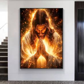 Quadro Decorativo Jesus Luz Da Graça Variação Moldura Preta - 60x40cm -