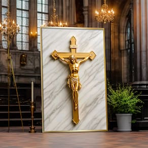 Quadro Decorativo Jesus na Cruz Dourado Moldura Preta - 60x40cm -