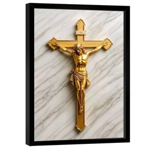 Quadro Decorativo Jesus na Cruz Dourado Moldura Dourada - 118x78cm -