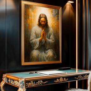 Quadro Decorativo Jesus Oração Artístico Moldura Preta - 118x78cm -
