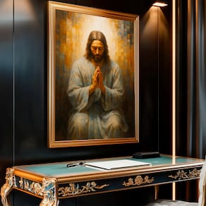 Quadro Decorativo Jesus Oração Artístico Moldura Preta - 60x40cm -