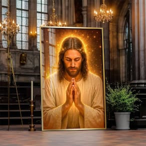 Quadro Decorativo Jesus Orando Quadro Decorativo Jesus Orando Moldura Dourada - 118x78cm - Especificações